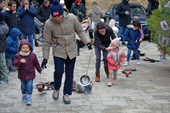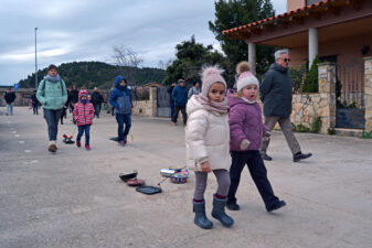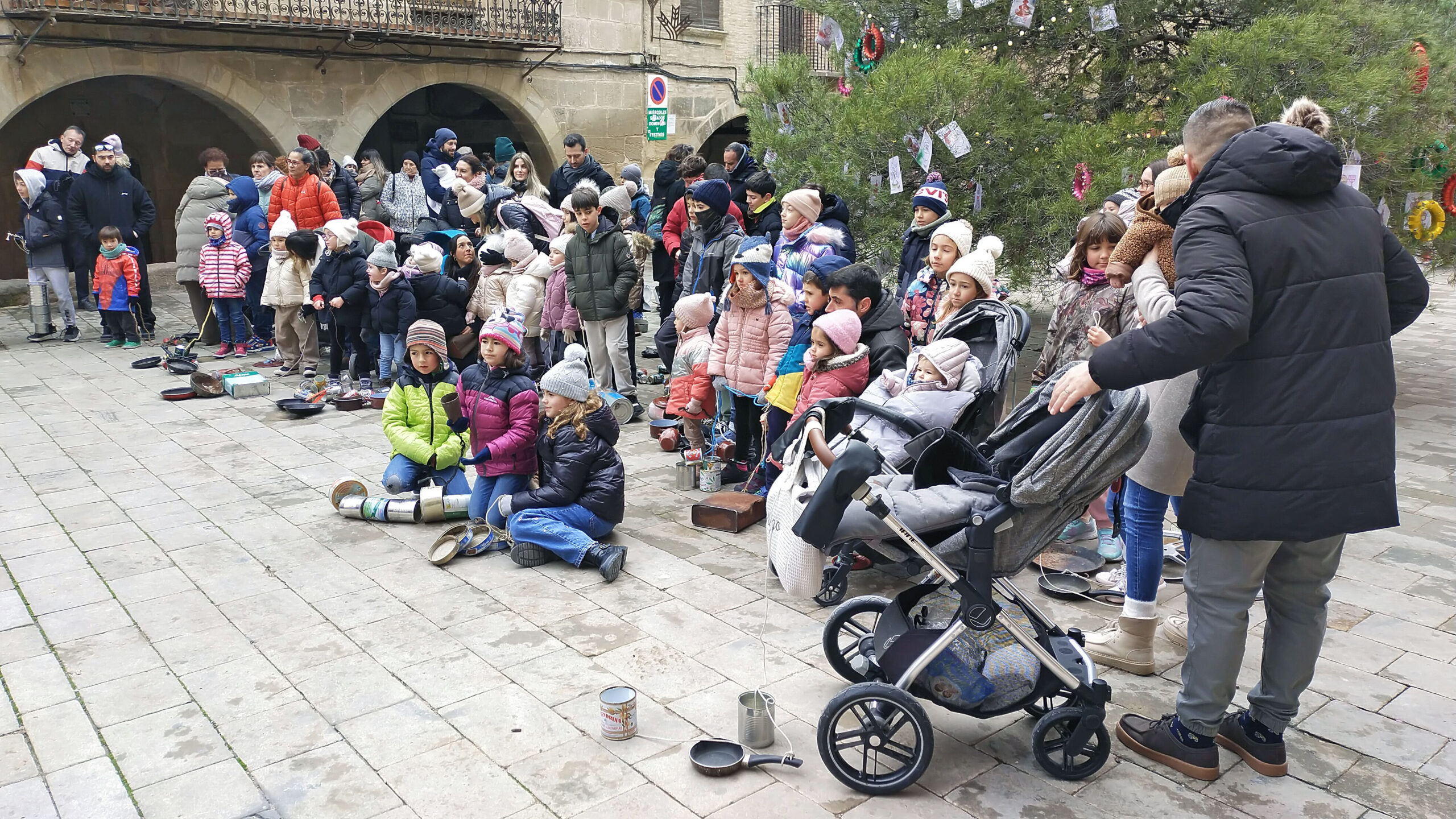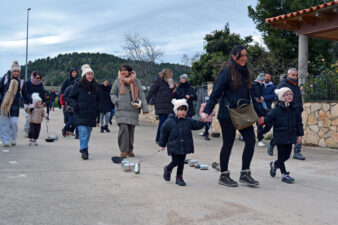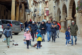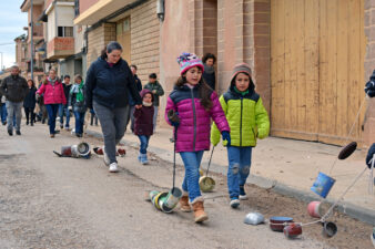 El matí del 5 de gener és un dels moments més bonics i emotius per als xiquets i xiquetes de la Freixneda. I és que arribe la Tradició dels Calderons, un d’aquells moments més icònics i únics del Matarranya. Tot i el pas de la borrasca Francis, que al nostre territori s’ha traduït bàsicament en fred, les famílies del municipi s’han reunit a la plaça Major per a complir amb un ritual que uneix generacions. Després d’una xocolatada popular i una foto de família davant del Pi de Nadal, xiquets i adults han arrastrat els seus Calderons. Paelles velles, cassoles, llaunes i pots de pintura, lligades amb cordes que els iaios i iaies han supervisat i posat a punt els dies previs, han començat a desfilar pels carrers del poble. Enguany, l’itinerari ha variat una mica. S’ha eixit de la plaça i s’ha marxat primer pels carrers del Soldevila, per a continuació tornar a la plaça i seguir fent soroll per la part alta de la Freixneda.