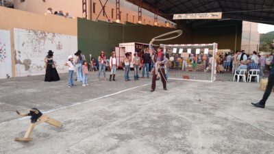 Dimarts, els veïns van treure els seus vestits tradicionals per lluir-los a la missa a l’ermita de la Mare de Déu de la Font i a la tarda es van canviar per a l’original festa temàtica, que va convertir el frontó en un veritable enclavament del Far West, on no van faltar vaquers, indis i un xèrif posant ordre. La comissió de festes va ambientar l’espai al detall i els més valents fins i tot es van enfrontar a un bou mecànic. Las Liantas va posar el toc d’humor a la nit.