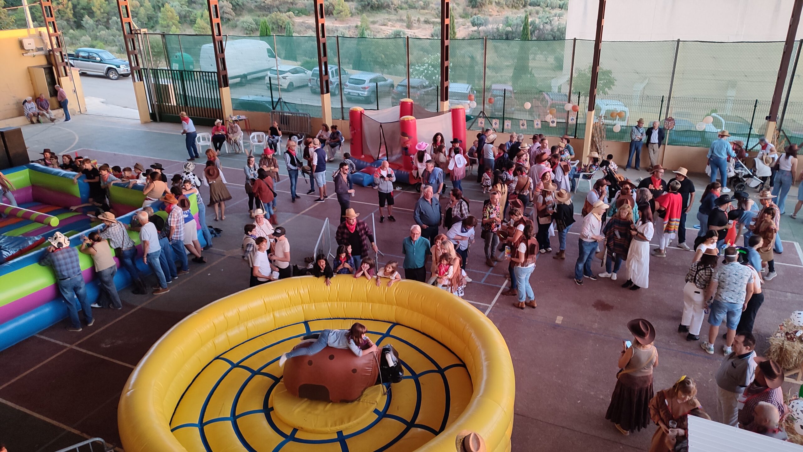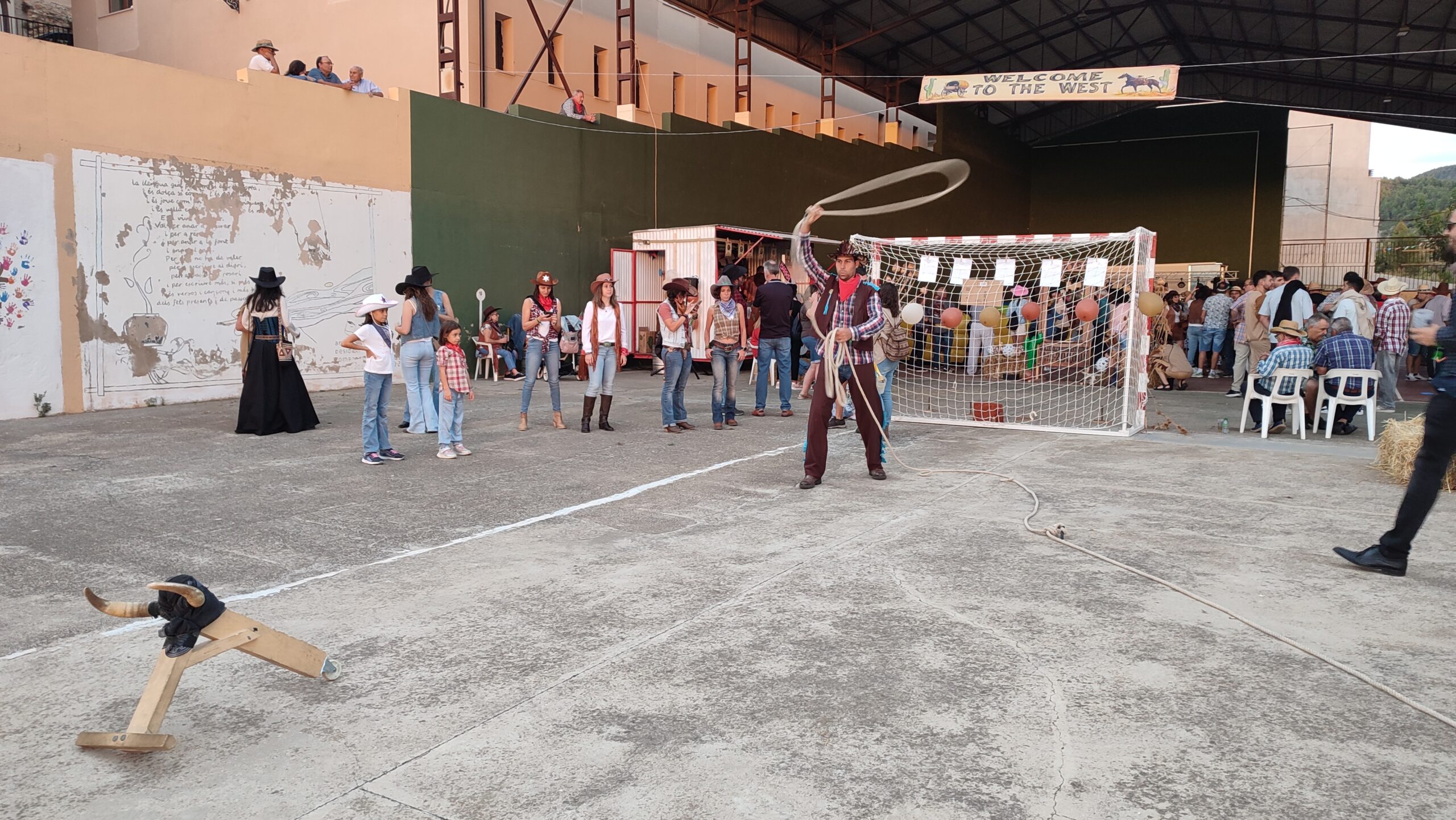 Dimarts, els veïns van treure els seus vestits tradicionals per lluir-los a la missa a l’ermita de la Mare de Déu de la Font i a la tarda es van canviar per a l’original festa temàtica, que va convertir el frontó en un veritable enclavament del Far West, on no van faltar vaquers, indis i un xèrif posant ordre. La comissió de festes va ambientar l’espai al detall i els més valents fins i tot es van enfrontar a un bou mecànic. Las Liantas va posar el toc d’humor a la nit.