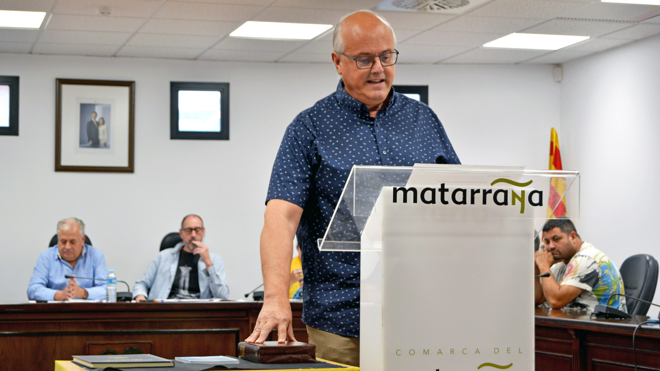 La sessió plenària corresponent al mes de setembre a Comarca va començar amb la presa de possessió de Juan Carlos Abella com a nou conseller comarcal, qui va jurar el càrrec. Abella és regidor municipal pel PAR a la capital del Matarranya i substitueix en el càrrec a Raúl Bordás. Una decisió que estava prèviament pactada, fent Bordás els dos primers anys de legislatura i Abella els dos últims.