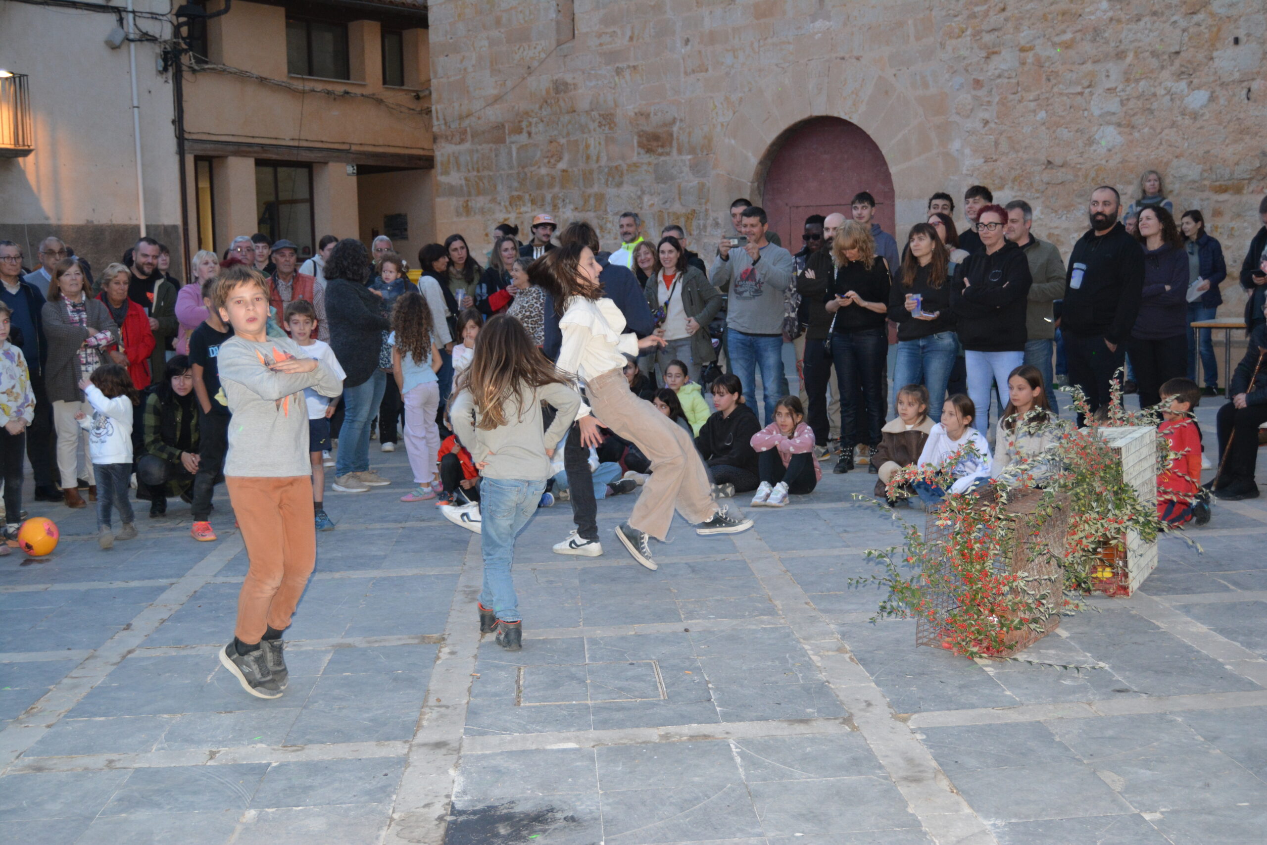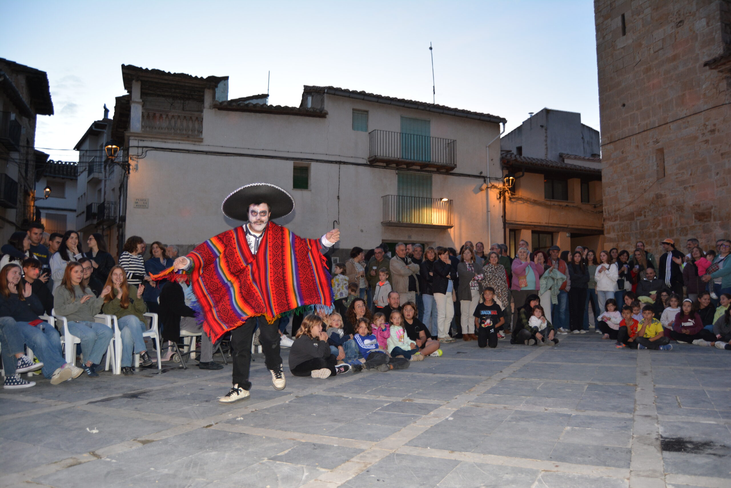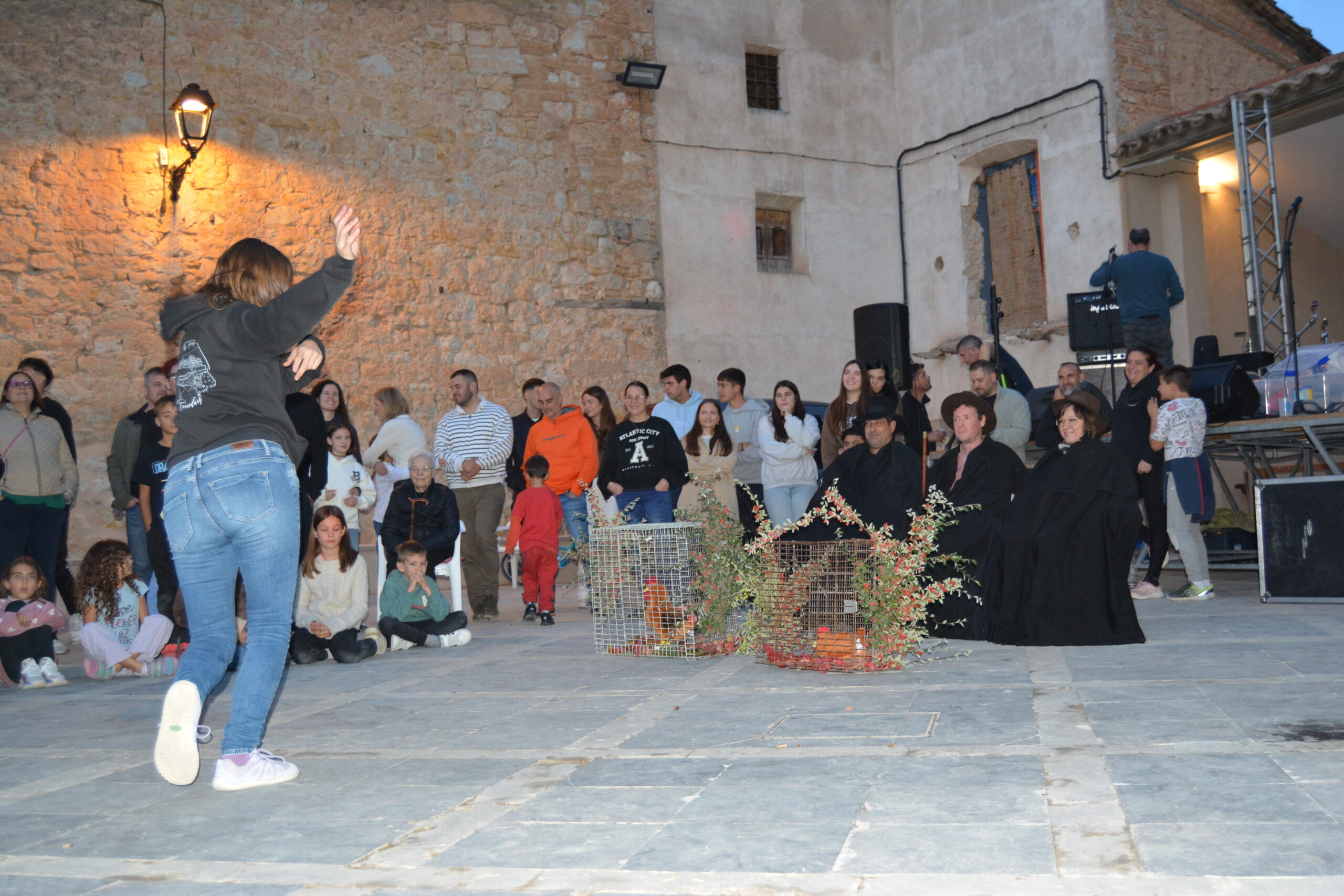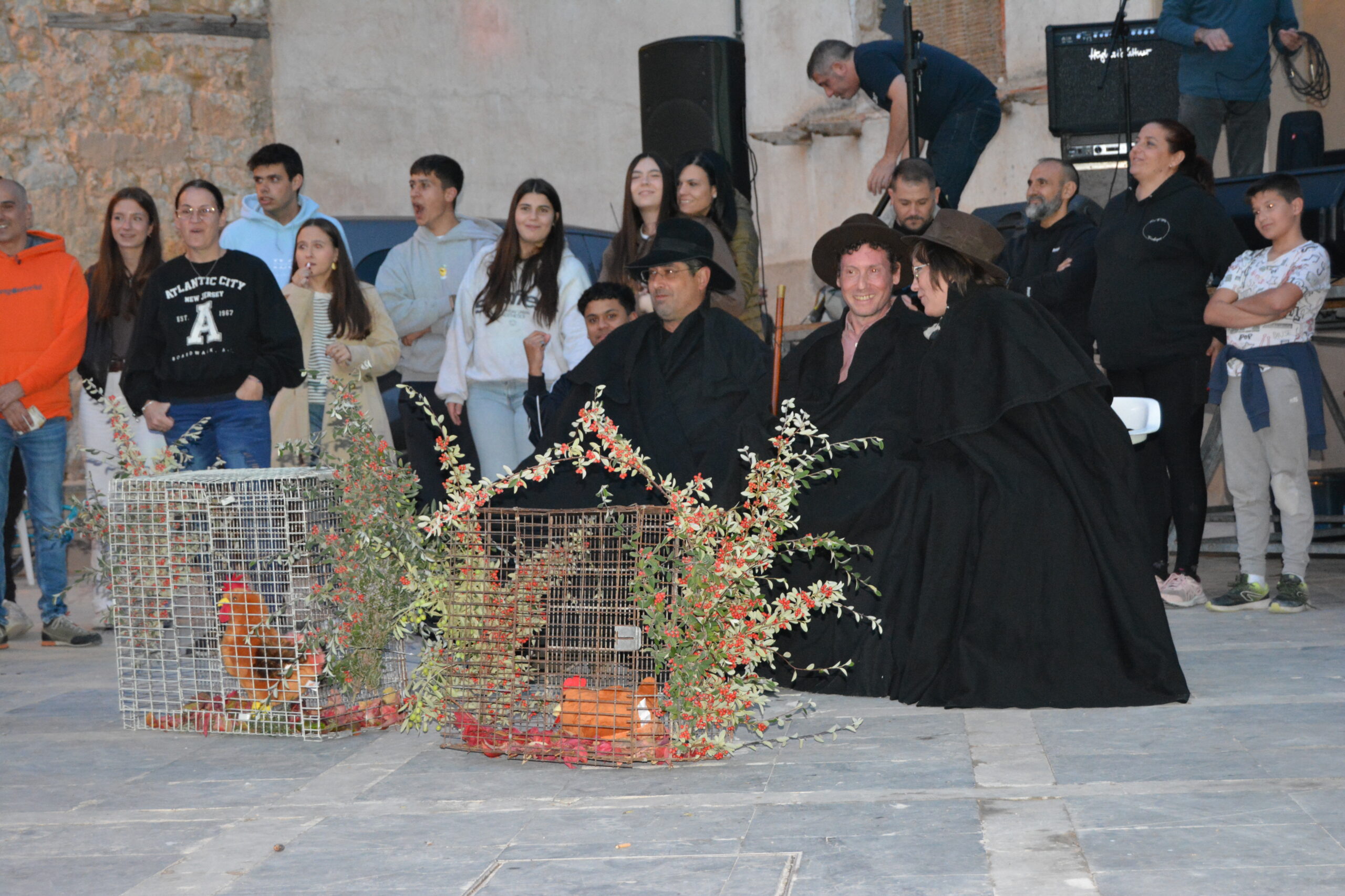 A la tarda, la plaça del poble es va omplir per viure el moment més esperat: el Ball del Poll, amenitzat per una parella de dolçainer i tabal vinguda de la província de Castelló. Els balladors van demostrar empenta i alegria davant d’un jurat vestit de negre amb capa i barret, com mana la tradició. “És una imatge que mantenim. Hi ha gent del poble que encara conserva les capes i és una manera de poder seguir la tradició de quan van començar en el Ball del Poll”, explicaven Ana Plana i Merche Ferrer. Enguany el jurat estava conformat per Mari Carmen Soler, alcaldessa de Mirambell i diputada a les Corts d’Aragó i de la corporació local, l’alcalde Luis Lasmarías i el regidor Cesar Segura.